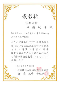 佐々木遥菜 - 無容器法で合成したLa2O3-WO3-MoO3系ガラスの物性と構造